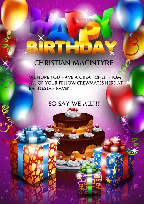 Battlestar Raven would just like to wish Raven Member: Christian MacIntyre, A VERY HAPPY BIRTHDAY!